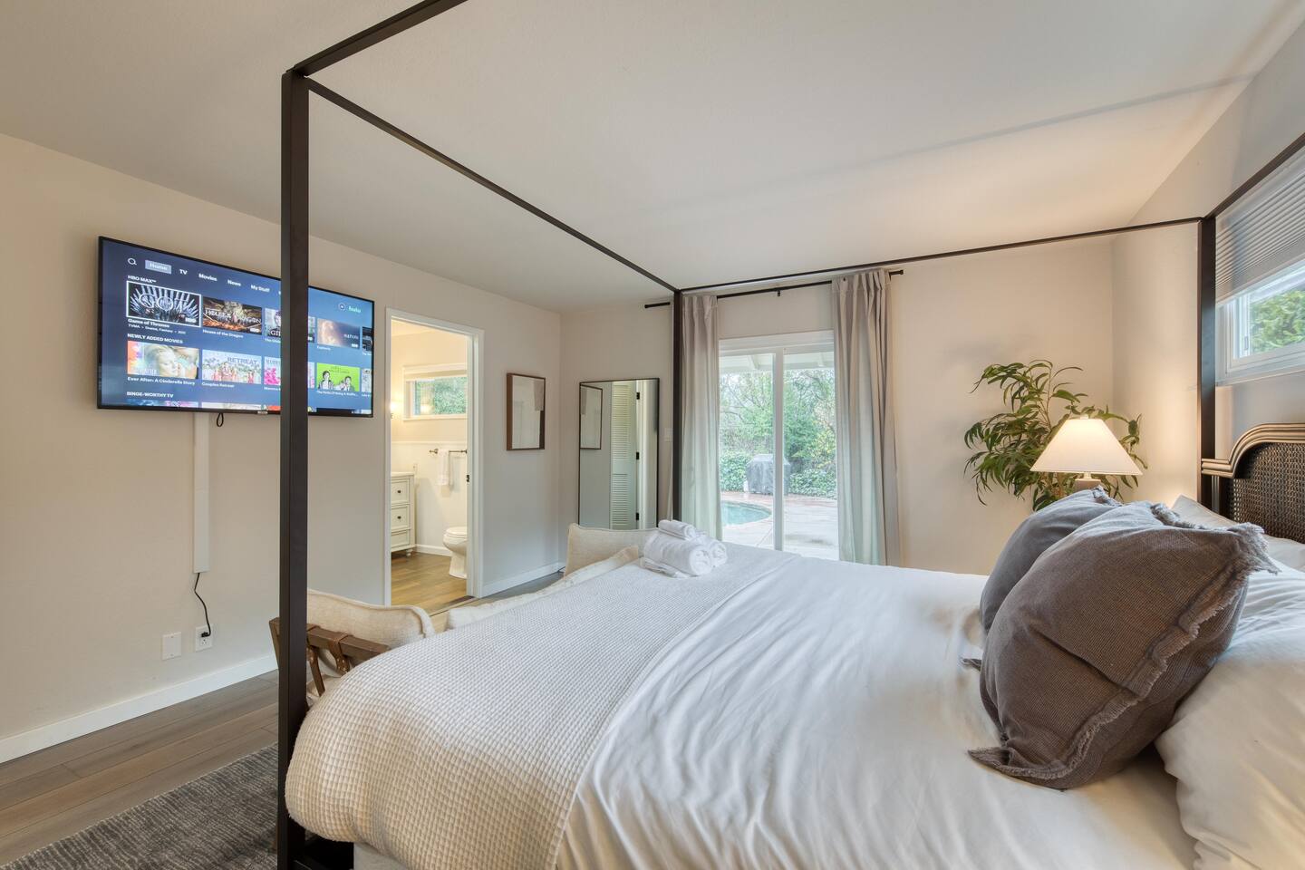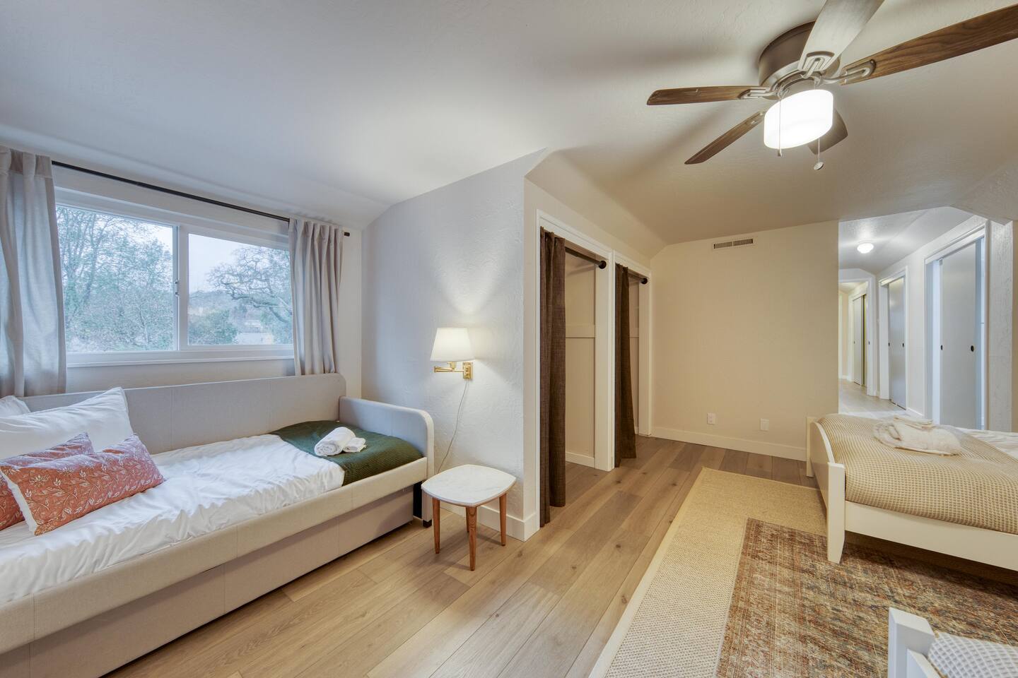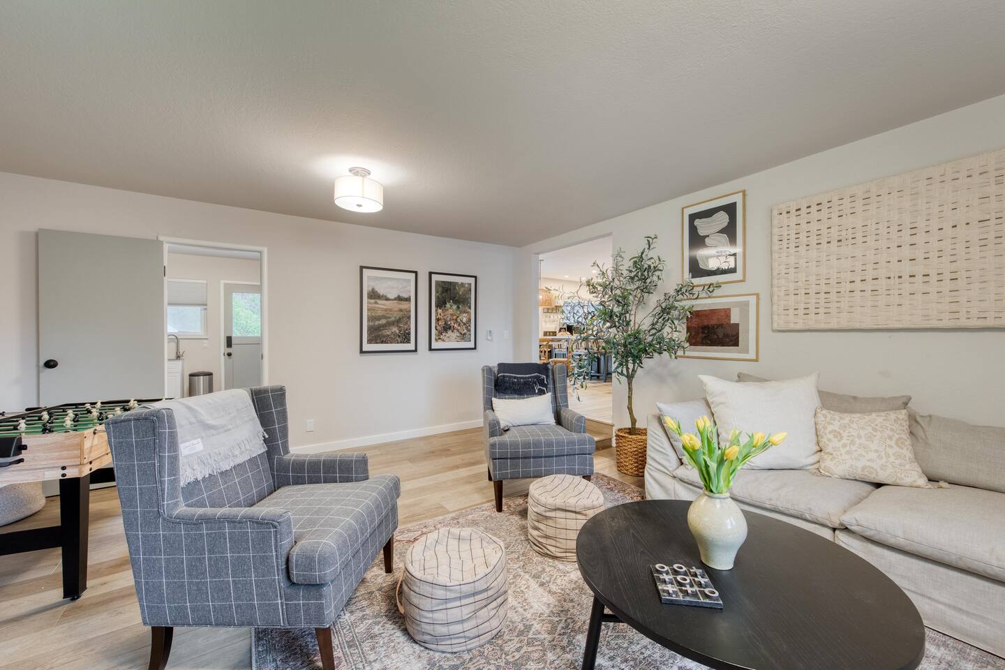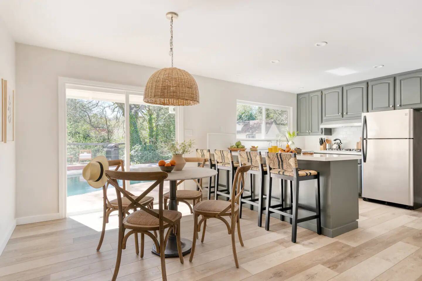 You've discovered the destination of your next getaway! Our expansive 2,700 sq ft 5 bedroom and 3 bathroom residence in Sonoma County provides ample space for both communal gatherings and private respites. Within this thoughtfully designed space, you can immerse yourself in various activities – from the family room's cozy ambiance for congregating and sharing great conversations or to unleash the competitive spirit invoked by a group game that will leave everyone entertained and energized. The dining room table invites strategic board game sessions, and the living room's plush armchairs offer a serene reading nook. Venture into the backyard oasis, where lush greenery surrounds a solar-heated swimming pool. Lounge chairs and an outdoor dining table provide inviting spaces to savor your morning coffee, adding an extra layer of delight to your stay. Welcome to a retreat where every detail is designed to enhance your experience and create unforgettable moments. Please note: Our pool is heated with a solar water heating system from May to October, which means it’s warmed by the power of the sun! During our main swim season, pool temps typically range from the upper 70s to low 80s. For accessibility, the main living areas, 2 bedrooms, and 2 bathrooms are conveniently situated on the 1st floor. The additional 3 bedrooms and 1 bathroom are on the 2nd floor. Strategically positioned near renowned wineries, vineyards, breweries, the Charles M. Schulz Museum, Howarth Park, and the Bennett Valley Golf Course, our residence acts as your central hub. Explore further South to the Bay Area, West to Bodega Bay, or elevate your experience with a hot air balloon tour above wine country or an adrenaline-pumping zipline and tree top adventure. Local Amenities include: 5 mins: - Starbucks - Whole Foods/Safeway/Trader Joe’s - Bennett Valley and Fairgrounds Golf Courses -Howarth Park: 138 acre park w/ 6 Pickleball/Tennis Courts, Playground & Carousel, Hiking, Dog Park, Seasonal & Weather Dependent: Party Picnic Spaces for Reservation, Boat Rentals, Fishing, Animal Barn & Pony Rides, Train Ride Farther out: - Russian River Activities - Floating, Kayaking, etc.: 20 Minutes - Healdsburg: 20 Minutes - Bodega Bay: 35 Minutes - Napa: 55 Minutes - San Francisco: 1 Hour - Charles M. Schulz Airport: 15 minutes